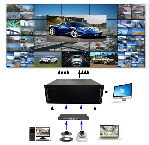 外置拼接解碼處理器(H.265)是專門為同時接入處理網(wǎng)絡攝像機(IPC)和外部源輸入信號(HDMI,DVI,VGA等)而設計,采用最新的專用圖像解碼芯片與FPGA搭配,通過專用圖像解碼芯片解碼網(wǎng)絡攝像機的信號,然后再和通過FPGA接入的外部源輸入信號混合處理,實現(xiàn)圖像切換,拼接,開窗,漫游等功能,是目前解決網(wǎng)絡攝像機